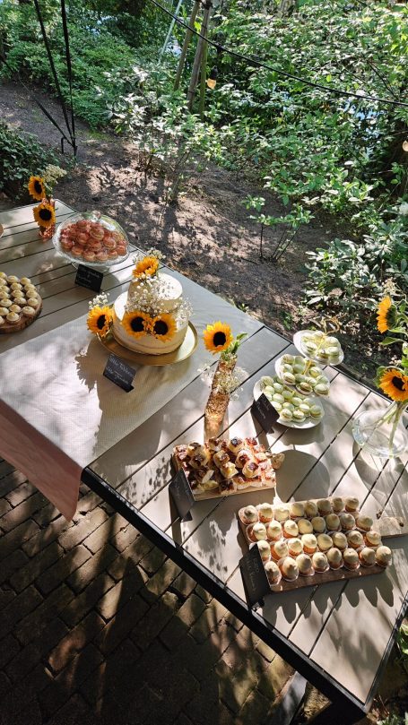 Een sweet table biedt een sfeervol en veelzijdig alternatief voor een traditioneel dessert of bruidstaart. Gasten kunnen zelf kiezen uit een gevarieerd aanbod van huisgemaakte zoetigheden, zoals cupcakes, koekjes, mini-taartjes, brownies en andere lekkernijen.